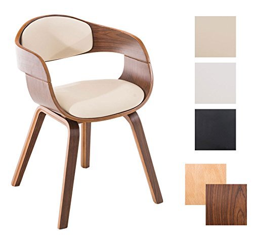 Die Kunstlederbezüge können problemslos mit einem feuchten Baumwolltuch gereinigt werden. Das Gestell des Retro-Stuhls ist aus hochwertigem Holz gefertigt und besonders robust.