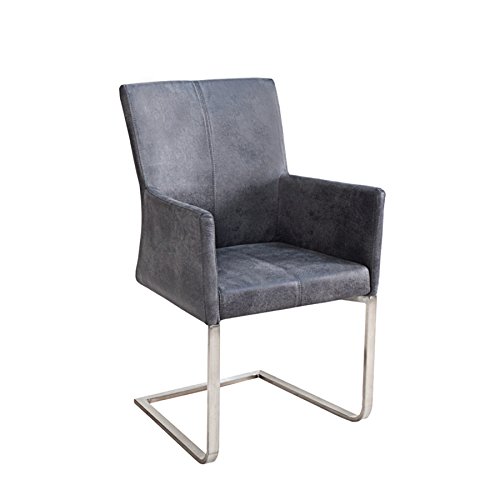 Moderner Freischwinger SAMSON mit Armlehne in Vintage Grau mit gebürstetem Edelstahlrahmen